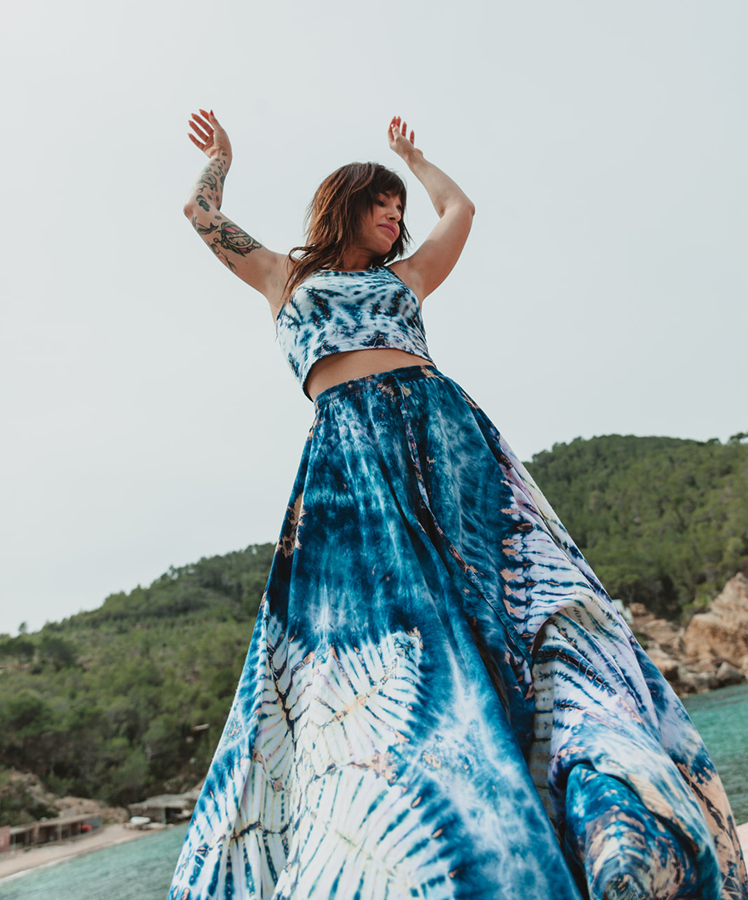 Falda pantalón realizada en rayón bajo la técnica hand Tie dye. Cada diseño es realmente único por lo que cada pieza es diferente. Dispone crop top a juego.